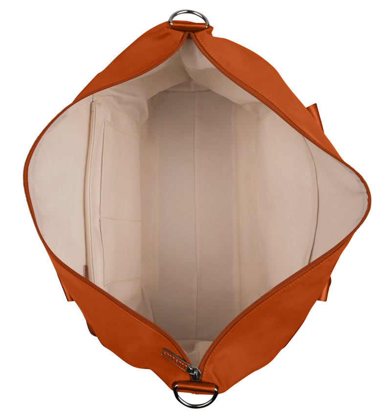 Perfektně se hodí pro veškeré potřeby na cvičení, skvělá pro víkendový výlet a překvapivě prostorná jako příruční zavazadlo do letadla. Díky širokému popruhu na zadní straně, můžete tašku pohodlně uchytit na výsuvné madlo cestovního kufru.