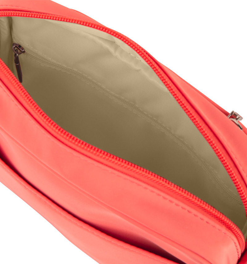Hlavní prostor je uzavíratelný zipem. Kromě hlavního prostoru má taška jednu přední kapsu na zip a na zadní straně bez zavírání. Uvnitř tašky jsou na obou stranách také praktické kapsy pro uložení malých předmětů, z nichž jednu lze uzavřít zipem.