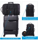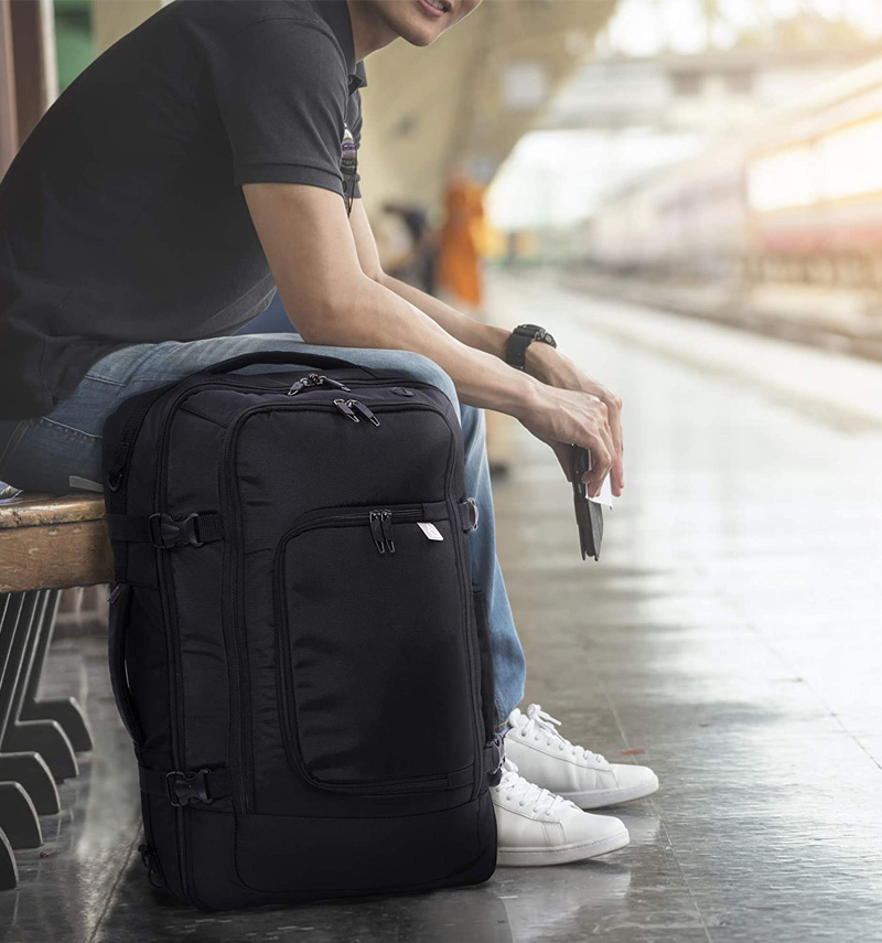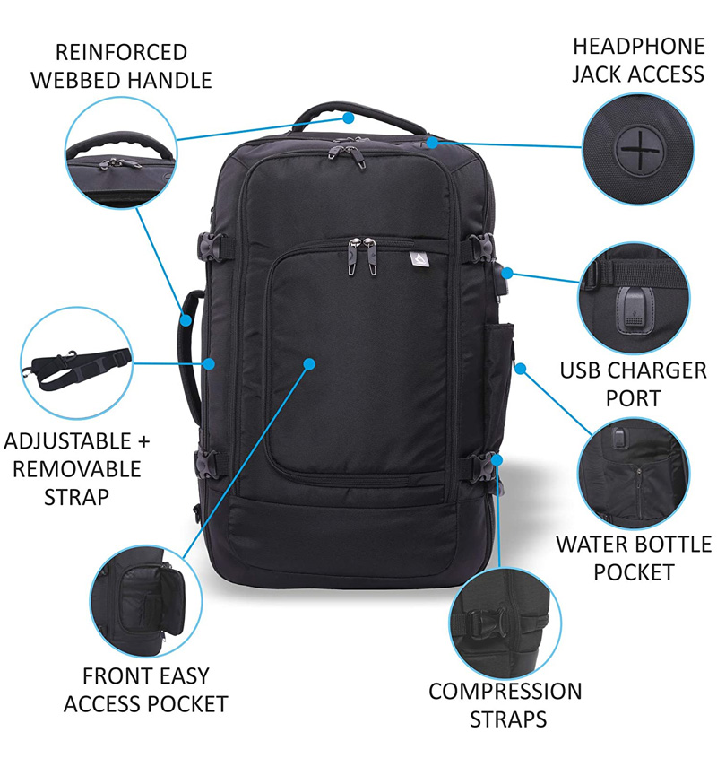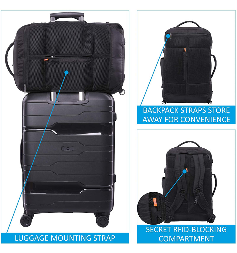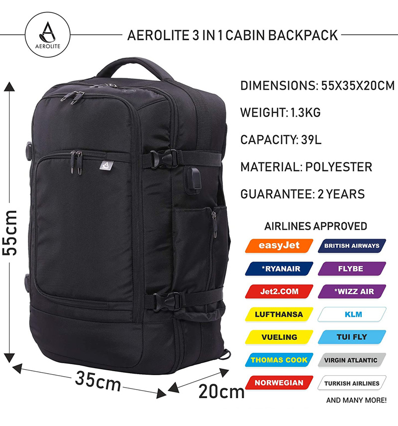 Toto zavazadlo má polstrované ramenní popruhy a záda ze síťoviny a lze je nosit jako batoh pro přepravu bez použití rukou. Popruhy lze schovat, když je nepoužíváte, v praktické kapse na zip. Můžete ho také nosit na rameni pomocí odnímatelného ramenního popruhu, nebo v ruce pomocí měkké vyztužené horní nebo boční rukojeti.