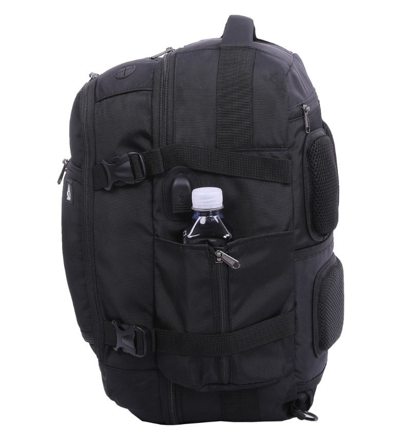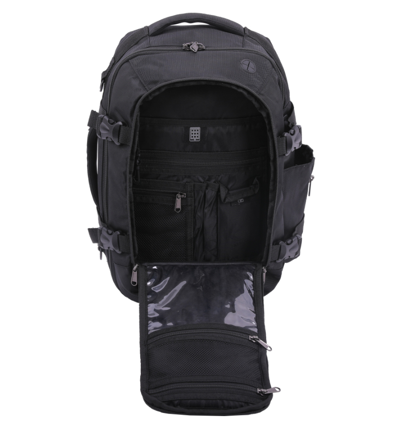 Prostorná hlavní kapsa, prostřední kapsa je pro vaši technologii - s prostorem na tablet (vhodné pro obrazovky do velikosti 10 ”) a menšími kapsami na příslušenství. Má také vodotěsnou kapsu na toaletní potřeby. Menší přední kapsa je ideální pro psací potřeby a menší věci. Navíc je na boku dokonce držák na láhev.