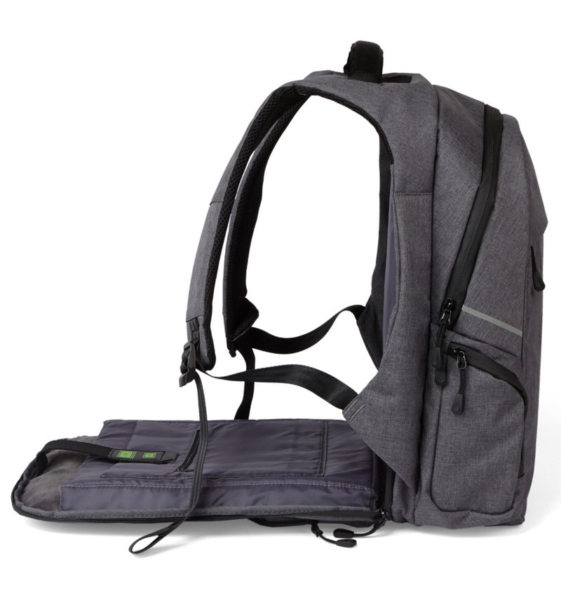 Batoh je vybaven vestavěným USB nabíjecím portem, včetně přenosné baterie (10 000 mAh), takže můžete snadno nabíjet své mobilní zařízení na cestách. Pro lepší viditelnost ve tmě je batoh vybaven dvěma reflexními pásky na bocích. Batoh má nastavitelné ramenní popruhy.