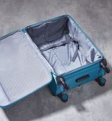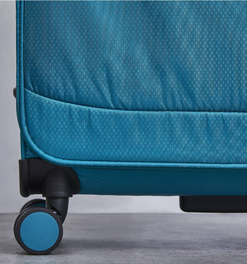 V přední části jsou umístěny dvě kapsy uzavíratelné zipem. Horní madlo je plastové a boční madlo je polstrované v barvě kufru. Celý pojízdný systém je umístěn uvnitř kufru pod textilní podšívkou, aby nedošlo k poškození systému při přepravě a je opatřen čtyřmi dvojitými kolečky otočnými o 360°. Kufr má lehký výsuvný systém, kapsu na vnitřní straně víka a jistící popruhy.