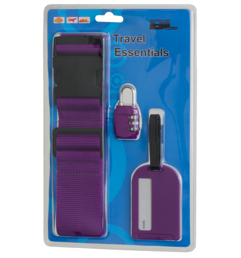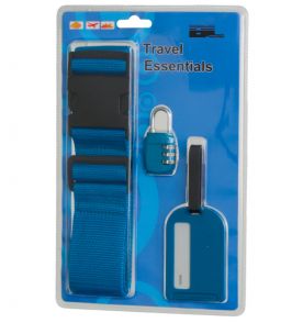 Popis produktuCestovní set obsahuje tyto 3 položky: 1) Bezpečnostní popruh na kufr s kódovým zámkem Popruh je zabezpečen proti otevření kódovým zámkem. Popruh má extra silnou přezku a je použitelný pro všechny velikosti kufrů. šířka: 5 cm délka: 183 cm Jmenovka na zavazadlo pro snadnou identifikaci Vašeho zavazadla. Pro zapsání kontaktních údajů vysuňte štítek.