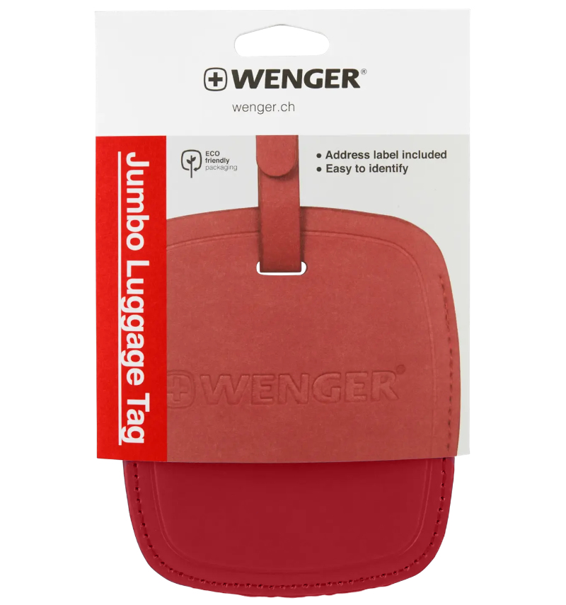 Jmenovka na zavazadlo z kolekce WENGER Jumbo. Jmenovka je vyrobena ze syntetické kůže, a slouží k rychlé a snadné identifikaci cestovního zavazadla.