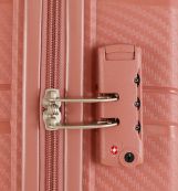 Kufr je uzavíratelný zipem, oba jezdce zipu se dají zapojit do TSA zapuštěného kódového zámku. Horní madlo je plastové. Má lehký teleskopický výsuvný systém, prostor na víku oddělený textilní přepážkou, vnitřní kapsu a jistící popruhy.