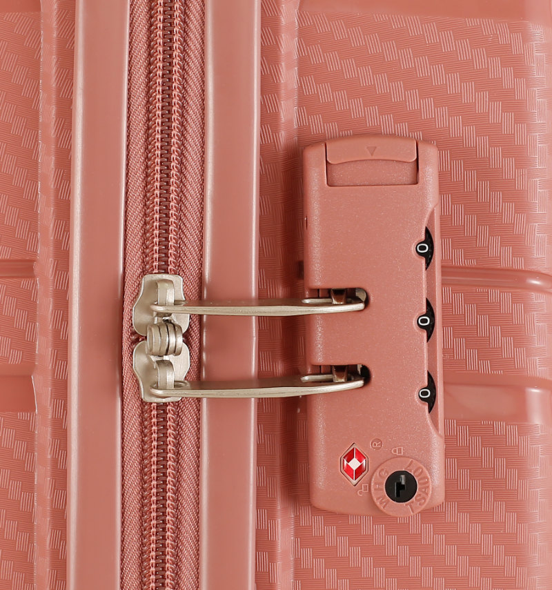 Kufr je uzavíratelný zipem, oba jezdce zipu se dají zapojit do TSA zapuštěného kódového zámku. Horní madlo je plastové. Má lehký teleskopický výsuvný systém, prostor na víku oddělený textilní přepážkou, vnitřní kapsu a jistící popruhy.