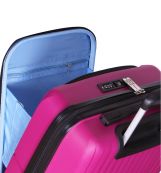 Kufr je uzavíratelný zipem, oba jezdce zipu se dají zapojit do TSA zapuštěného kódového zámku. Horní madlo je plastové. Tato velikost kufru nemá boční madlo. Má lehký teleskopický výsuvný systém, prostor na víku oddělený textilní přepážkou, vnitřní kapsu a jistící popruhy. Na přední straně kufru je polstrovaná kapsa na notebook.