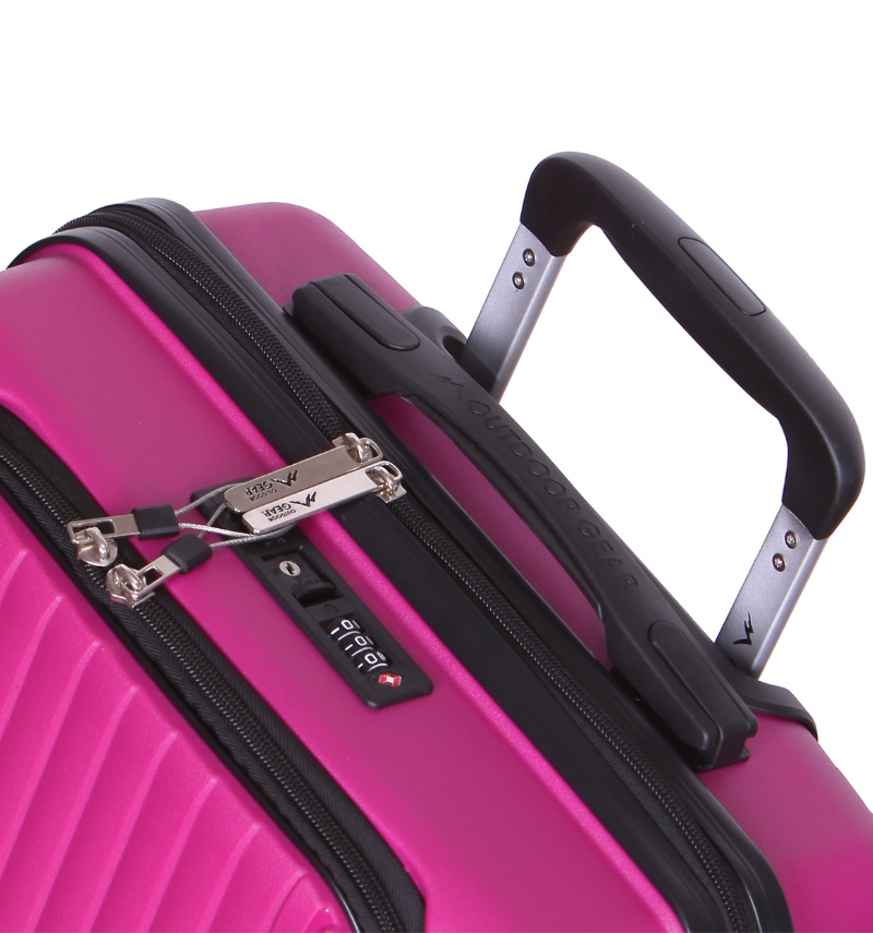 Sada cestovních kufrů z kolekce OUTDOOR GEAR Garnet je vyrobena z extrémně pevného polypropylenu, který je pevný a odolný proti nárazu.