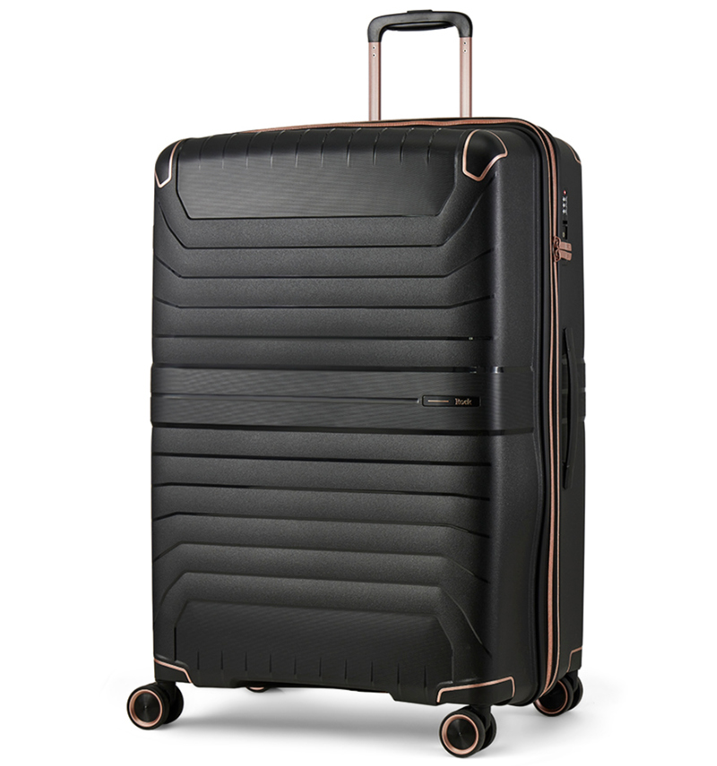 Cestovní kufry z kolekce ROCK Astrid jsou vyrobeny z polypropylenu, který je pevný a odolný proti nárazu.