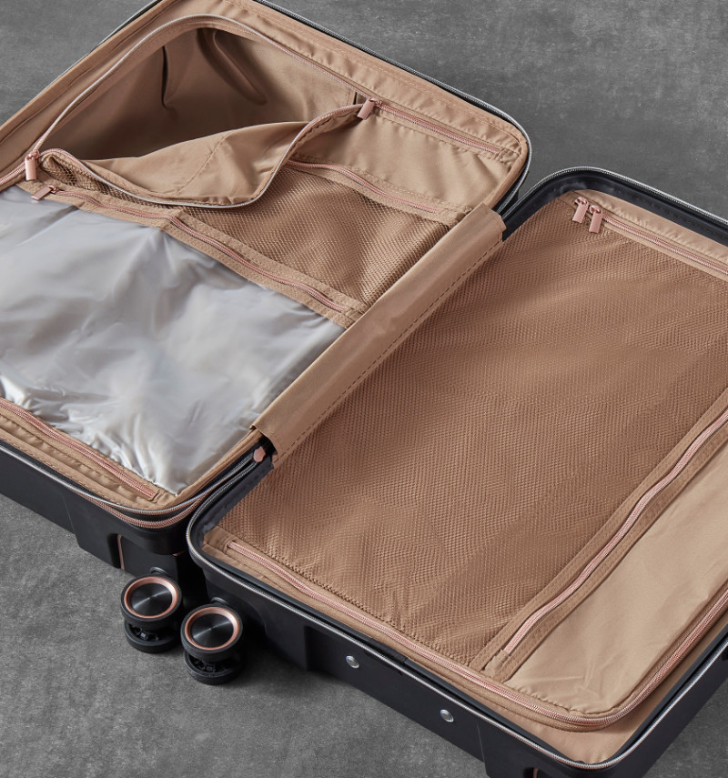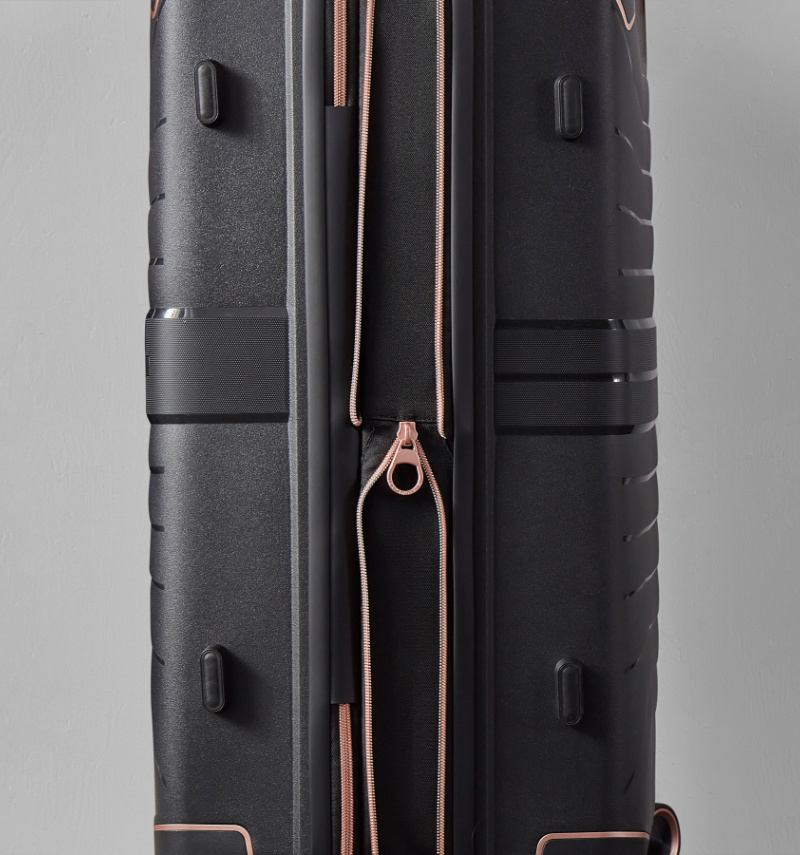 Kufry jsou uzavíratelné zipem, jezdce zipu se dají zapojit do TSA zapuštěného kódového zámku. U kufrů lze pomocí druhého zipu zvětšit vnitřní objem. Horní i boční madla jsou plastová. Nejmenší kufr (S) nemá boční madlo. Mají lehký výsuvný systém, prostor na víku oddělený textilní přepážkou, vnitřní kapsy a jistící popruhy.