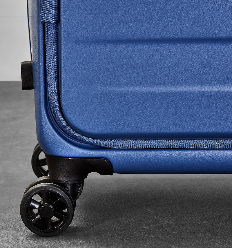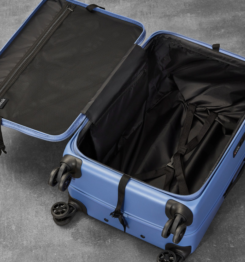 Kufry jsou uzavíratelné zipem, oba jezdce zipu se dají zapojit do TSA zapuštěného kódového zámku. Horní i boční madla jsou plastová. Kufry mají lehký výsuvný systém, kapsu na vnitřní straně víka a jistící popruhy. Celý pojízdný systém je umístěn uvnitř kufru pod textilní podšívkou, aby nedošlo k poškození systému při přepravě, a je opatřen čtyřmi dvojitými kolečky otočnými o 360°.