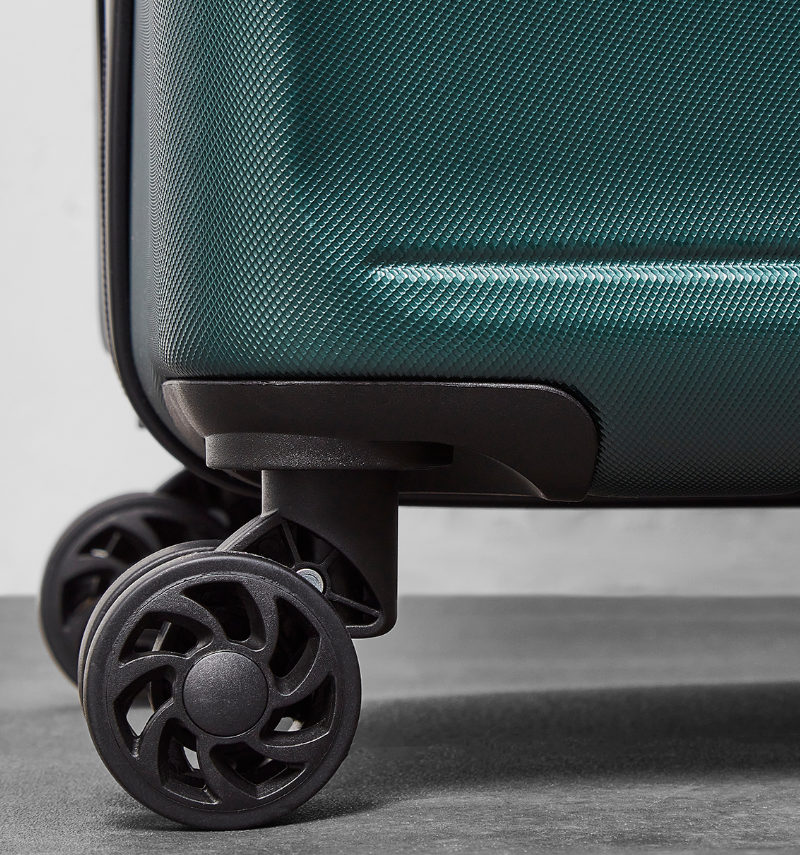 Celý pojízdný systém je umístěn uvnitř kufru pod textilní podšívkou, aby nedošlo k poškození systému při přepravě a je opatřen čtyřmi dvojitými kolečky otočnými o 360°.