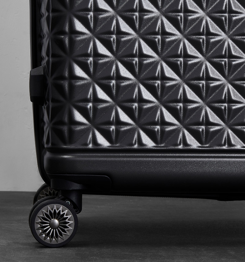Kufry jsou uzavíratelné zipem, jezdce zipu se dají zapojit do TSA zapuštěného kódového zámku. U kufrů lze pomocí druhého zipu zvětšit vnitřní objem. Horní i boční madla jsou plastová. Nejmenší kufr (S) nemá boční madlo. Mají lehký výsuvný systém, prostor na víku oddělený textilní přepážkou, vnitřní kapsy a jistící popruhy.