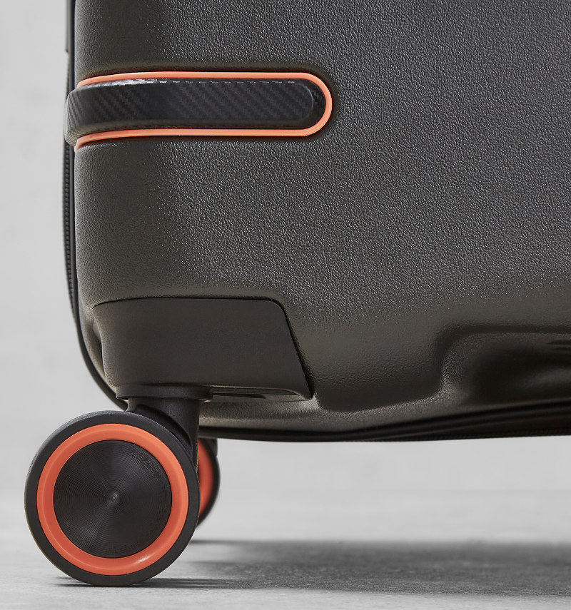 Celý pojízdný systém je umístěn uvnitř kufru pod textilní podšívkou, aby nedošlo k poškození systému při přepravě a je opatřen čtyřmi dvojitými kolečky otočnými o 360°. Kufry mají lehký výsuvný systém, vnitřní přepážku a jistící popruhy.